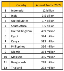 Mobile media company, published a report on mobile money recently, based on research they did across their rather sizeable worldwide audience. In case you’re wondering, here’s a break down of their mobile page impressions last year across their top countries: