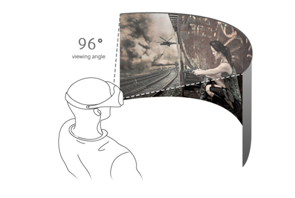 The device itself resembles a cross between the Oculus Rift and Google Cardboard. The unit has a plastic casing, with an elastic strap on the back that fits snugly on the wearer’s head.