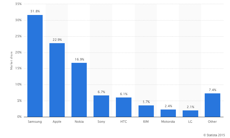 According to a study conducted by Statista, one of the leading statistics companies on the Internet, whose partners include Mashable, Business Insider and Forbes to name a few, Samsung’s share of the UK smartphone market grew from 11.2% in 2011 to 31.8% in 2014. And forecasts say it will continue to grow in the coming years.