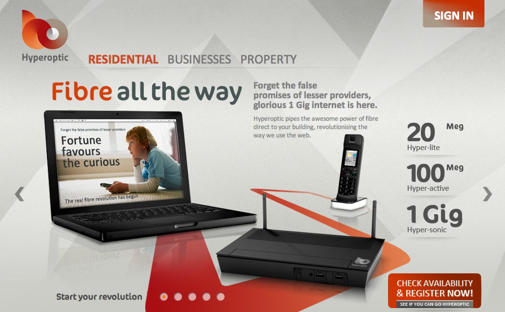I’m rather interested in becoming a subscriber to newly arrived Hyperoptic. They’re a broadband service provider here in the UK that apparently provides 1GB connections (via fibre, obviously) to residential and business premises.