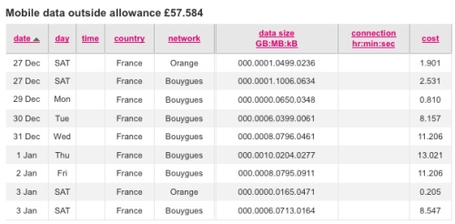 Have a read of my roaming data bill from T-Mobile UK (for my G1) over the Festive period: