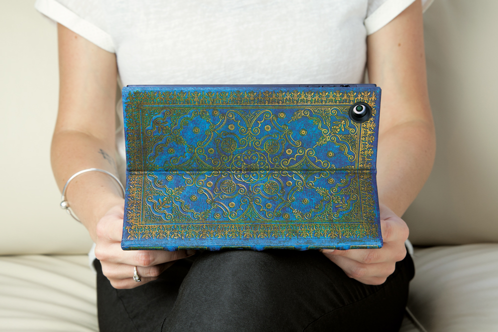 With all the protective elements you expect from a tablet case as well as infinite angles and viewing positions, this eXchange Tablet Jacket® System proves that you really can have it all! Featuring an elaborate gold-embossed design, this cover reproduces a 1688 book binding that was originally stitched entirely by hand.