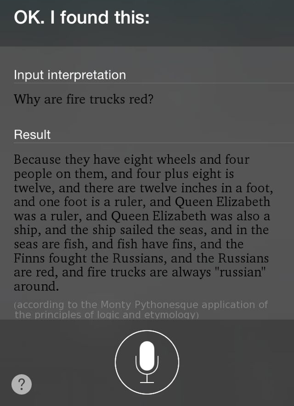 It’s not that voice recognition on the iPhone is bad – most of the time it provides reliable and accurate information (when I’m in the UK; but abroad it’s another story) but it’s usually not much quicker than just navigating to an app or typing in a search query manually. What’s more, at times the responses can be just so boring and unimaginative.