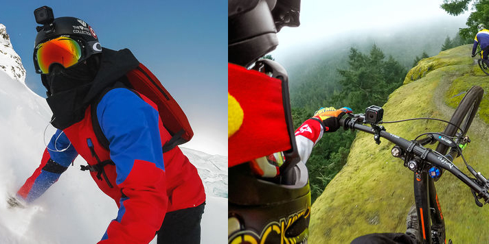 The newly-announced Hero 4 Session is GoPro’s latest camera that, though smaller than their current range, has just as many great features and also works with existing mounts – these are little plastic mounts that attach to all manner of things, such as motorbike helmets, surfboards, handlebars, you name it.