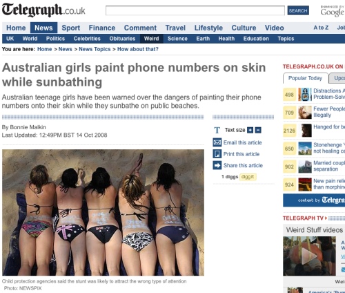 The Telegraph has the details (as pictured) and explains that 14-15 year old girls have taken to the practice of writing their digits on their back with blue-coloured zinc sunblock.