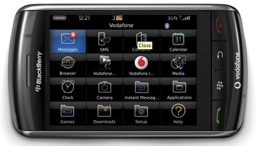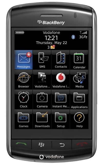 My biggest issue with the Storm is that it’s not necessarily a direct-upgrade-path from your traditional Blackberry with a QWERTY keyboard. Frank demonstrates the keyboard in the video — on-screen Pearl style keyboard if you hold the device vertically, QWERTY if you turn the device horizontal — and the screen feels buttonish. That should help. Here’s what Vodafone say about the screen: