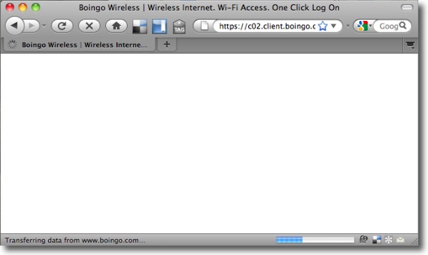 It’s not the Boingo service screwing up. I know this because I’m connected to the internet (still sat in the dire 1990s bright-but-faded ‘cafe’ place) and I’m browsing the Boingo site.
