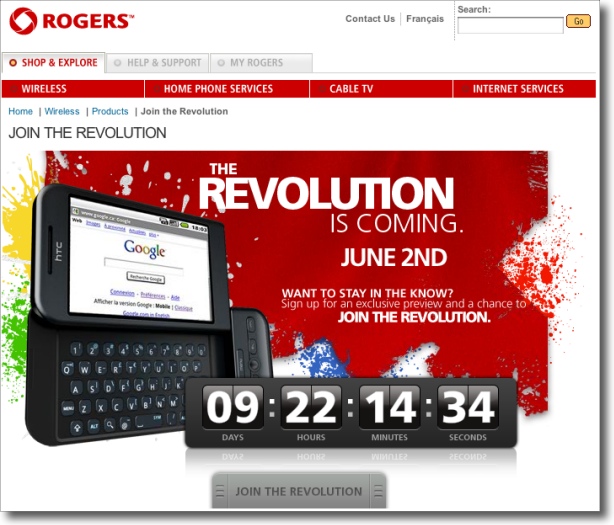 Teleclick.ca reports that on June 2, Rogers will release the HTC Dream (the T-Mobile G1) and the slightly newer HTC Magic. The devices will reportedly ‘cost less than an Apple iPhone or comparable BlackBerry’. Good.