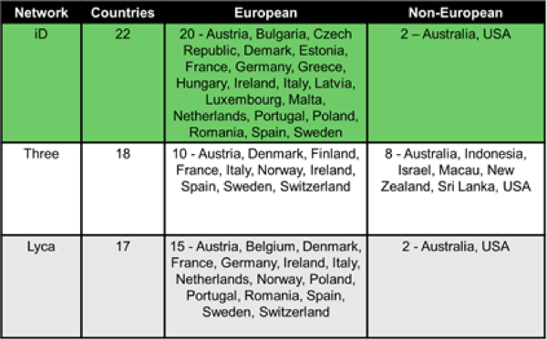 Here’s a comparison between a couple of networks in terms of using your UK data plan abroad. The new iD network beats even Three’s “roam like home” deal.