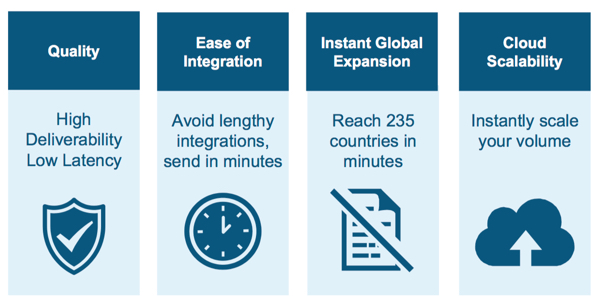 But Gett’s communications architecture soon encountered growth pains. Gett had been relying on three regional SMS providers to send batch text messages to drivers with general information and updates. The providers also sent text messages to new users containing verification PINs that the users had to enter into Gett’s registration system when they first installed the Gett app. They also sent status updates via SMS to passengers who opted not to receive push messages through the Gett app. Yet as Gett expanded its operations, its reliance on three separate SMS providers became problematic.