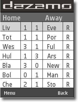 Dazamo offers real-time football results via java app