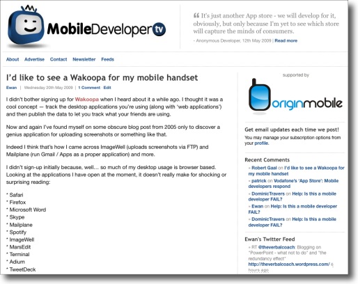 That’s how Mobile Developer TV is looking at the moment. I’m pretty pleased with the clean lines.