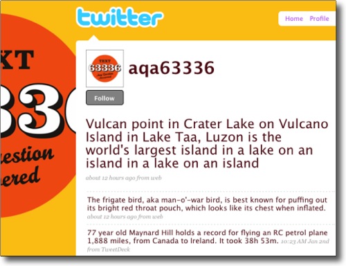Follow AQA63336 on Twitter for some Twitertainment