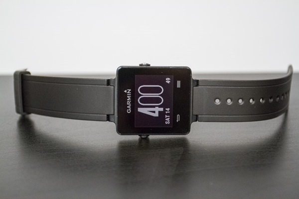 The Garmin Vivoactive is incredibly lightweight and the screen so shop that you might be forgiven for thinking that it’s a prototype. The 1.13 x 0.80 inch display is always on, making the device a perpetual wristwatch. Without the straps, it measures just 1.72 x 1.52 x 0.32 inches and weighs 0.63 ounces. It’s thinner and lighter than most other activity trackers that have smartwatch features.