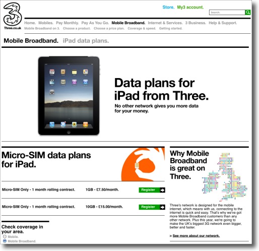 Getting an iPad? 3UK's micro-sim is £15 for 10GB/month