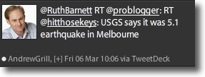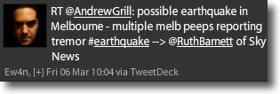 The always-connected AndrewGrill caught news that there’s apparently been an Earthquake in Melbourne, Australia. 5.1 apparently.