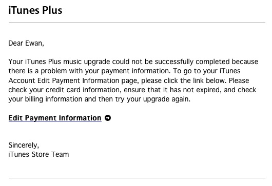 Right. So my account’s been working perfectly with the billing information you’ve had on file for ages. I’ve been buying tracks RIGHT UP until the moment I hit the BUY button.