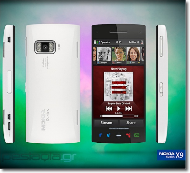 That there is the next Nokia handset — the X9 — supporting 720p quad LED, microSD, HDMI, dual mini USB, AMOLED screen…