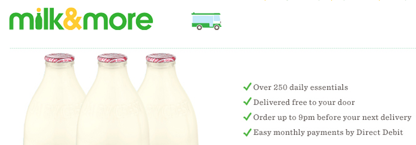 My wife promptly ordered a bottle of milk each morning. The chap also handed her a leaflet promoting Milk&More — an enhanced offering from Dairy Crest, the company behind the milk service. I remember thinking it was a super idea. The concept is simple: Order online before 9pm and the milkman will bring you other goodies too. You can choose from a pretty wide range of 250 daily essentials from Corn Flakes to biscuits.