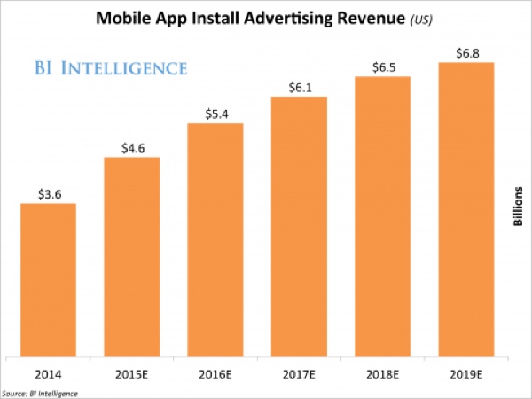 Data from BI Intelligence finds that US mobile app-install ad revenue will top $4.6 billion this year and grow to $6.8 billion by the end of 2019, increasing by a compound annual growth rate of 14% from 2014. BI Intelligence states that the app installation revenue makes up 30% of all mobile ad spending, with an average click through rate (CTR) of just under 1% in the first quarter of 2014, in contrast with an average CTR of 0.24% for every Facebook ad type across desktop and mobile. That indicates a business with considerable room for growth, however it’s not exactly the type of growth that has been typical of mobile in the past.