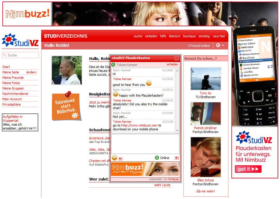 Nimbuzz integrated into Germany's largest social network, StudiVZ