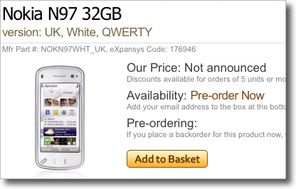 You can pre-order a Nokia N97 this morning at Expansys.