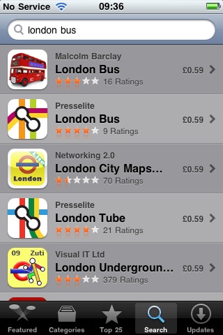 For a brief moment (several weeks plus) the application sells a lot more. Together with the rating being rigged & Presselite’s stealing of my icon their London Bus application went from well outside the top 20 in UK Travel & rocketed up to No.10 in a matter of days.