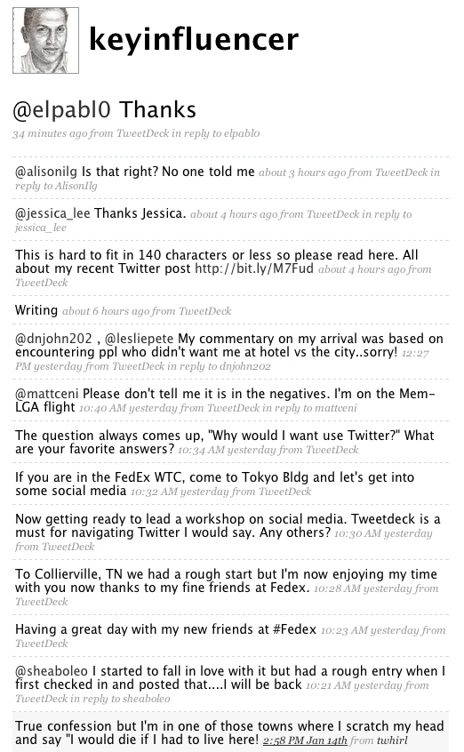 Two minutes later, no doubt demonstrating Twitter to the masses at FedEx, he posts: