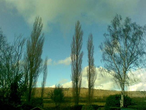 That’s the North Downs (a ridge of chalk hills in south east England that stretch for 120 miles (190 km) from Farnham in Surrey to the White Cliffs of Dover in Kent – thanks Wikipedia).