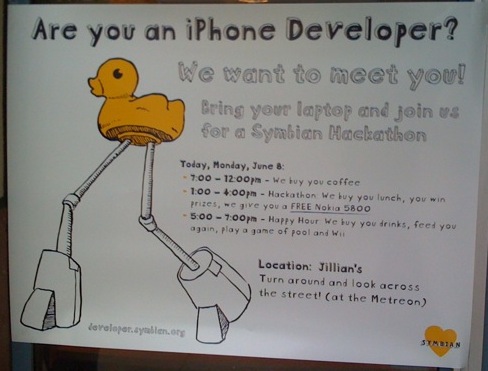 “Bring your laptop and join us for a Symbian Hackathon,” reads the headline.
