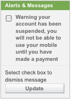 Warning your account has been suspended, you will not be able to use your mobile until you have made a payment