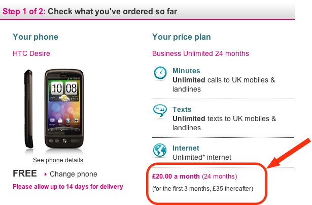 They didn’t even say in big letters on the HTC Desire special offer that it’s “20/month 3-month special offer” or anything like that. No. Ridiculous.