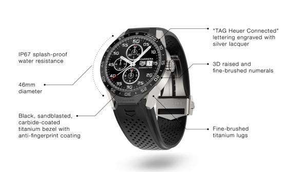 As for the “Connected” watch itself, it features almost all the usual assortment of sensors (though there is no heart rate sensor) as well as a skeuomorphic classic watch face that can be changed via the accompanying smartphone app. Modelled after the well known Carrera watch, the titanium clad case features a circular LCD touchscreen and comes with various rubber straps. Bluetooth and Wi-Fi are supported for connectivity, and the CPU is an Intel Atom running at 1.6 GHz (with a 500 MHz “normal speed”). Rounding out the specs are 1 GB of RAM and 4 GB of flash memory. Battery life is said to be around a day of normal usage, pretty much in line with the majority of smartwatches available today.
