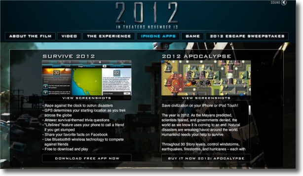 If you’d like to see what the market thinks about Nokia, all you have to do is visit the official site of one of Hollywood’s latest movies, ‘2012’. It’s the next version in the apocalyptic-nightmare-CGI-fest genre (the previous being The Day After Tomorrow).