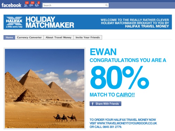 And although it’s not strictly mobile based, I have to admit, I was particularly impressed at how Halifax have engineered the tool. So, we start with the premise that Halifax would like you to know about their travel money services. No problem. Their agency has come up with the idea of creating a Facebook app.