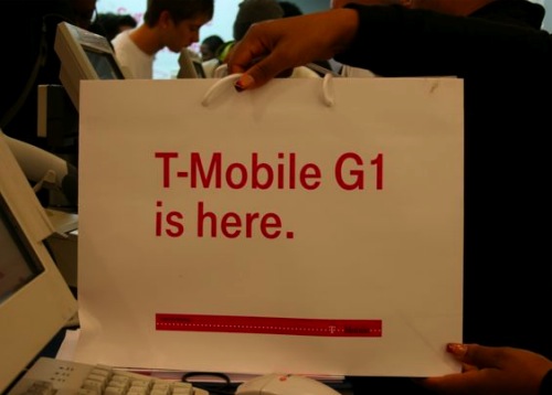 I got out the film camera and captured some outside shots then I popped into film the shenanigans. Organised. Busy. Energy. The place was raidiating energy and enthusiasm. Every one of the, what, 8 tills, was busy. G1s were flying out the door. Much, much better managed than your average iPhone scramble. I talked to T-Mobile’s head of Social Media (yes, they have a chap who’s responsible for that now!) and filmed a little bit with Richard (the chap who gave us the demo at the press launch last month). I’ll aim to have that edited and published probably for tomorrow.