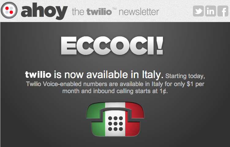Twilio is now available in Italy!