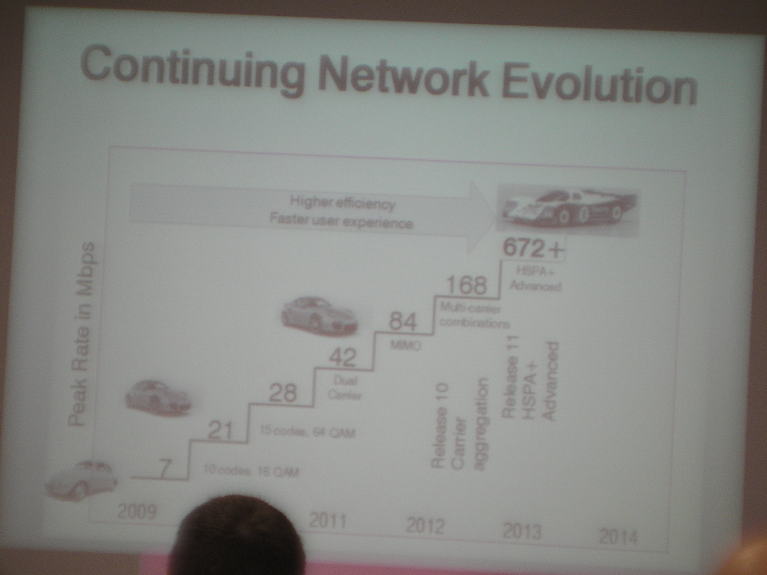 Here’s an incredibly burry shot of Kathy’s slide on HSPA+ evolution at T-Mobile (sorry abou the blur, I was sitting at the back and had to snap it quickly):
