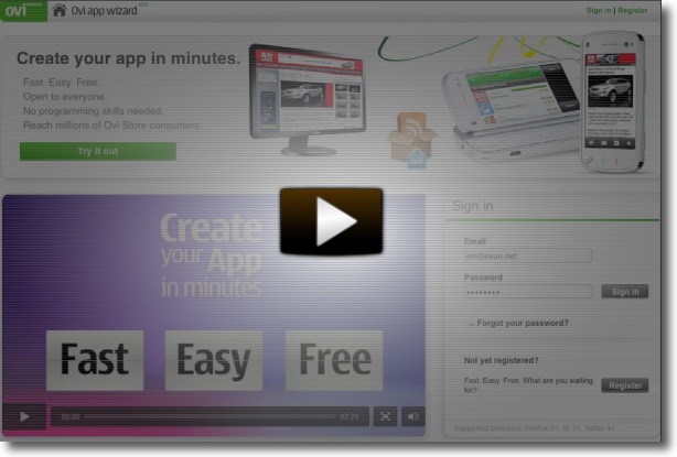 Video: Using Ovi App Wizard to make an app in seconds