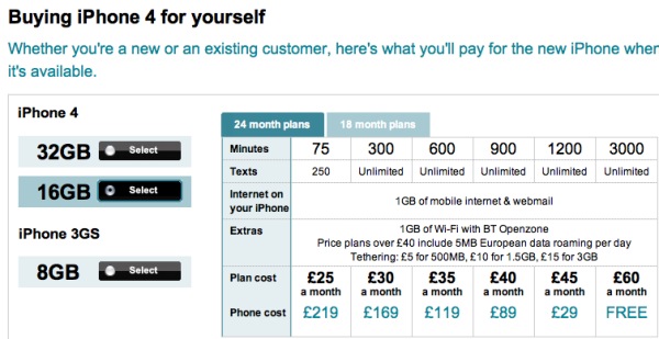 Vodafone UK's iPhone 4 pricing revealed (free on 60/month)