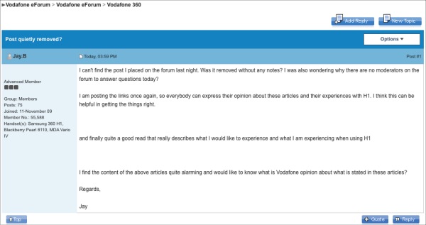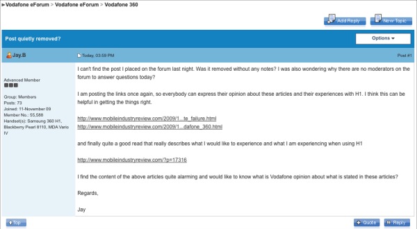I was having a look at the referring traffic from Vodafone’s 360 forum today and saw quite a few clicks coming from this forum post.