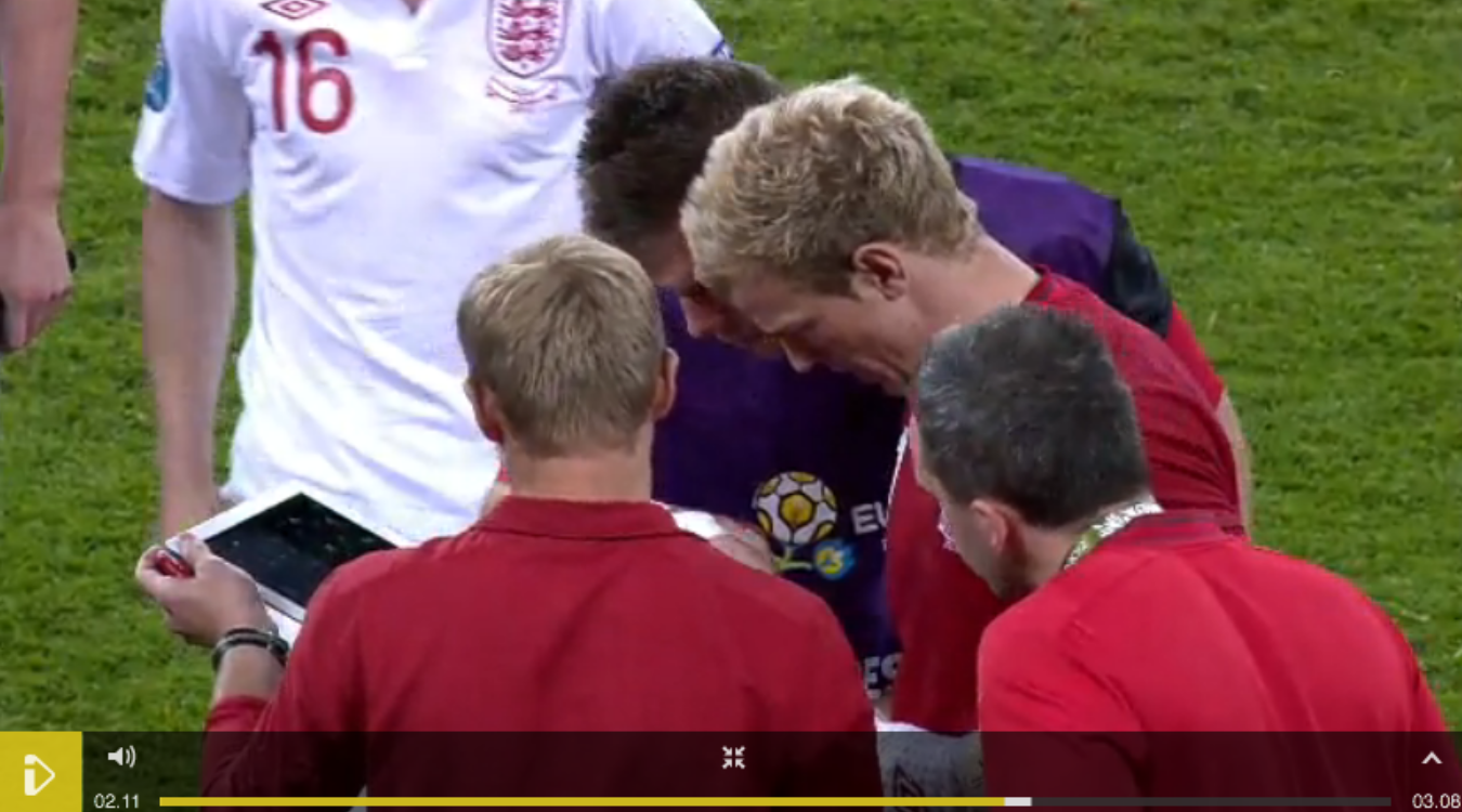 I watched the highlights of the England v Italy European 2012 game last night courtesy of the good old BBC. Midway through as the penalties were announced I caught this brief glimpse of the officials getting organised and I’m sure I saw an iPad being used. Did you spot it? Was I right? I can’t quite be sure from that frame!