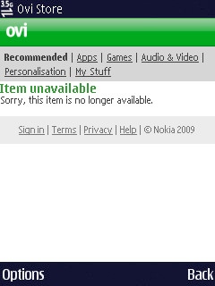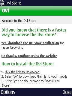 Instead of being transported to the Ovi Store website, I got this screen: