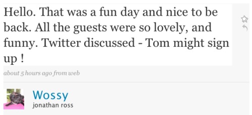If any of this gets on air… If there’s any attempt at explanation — particularly by the gifted communicator that is Mr Fry — then I think Twitter is about to begin a march toward an impressive UK zenith. Millions of folk watch Jonathan Ross’ show.