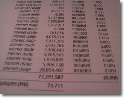 Back on the 11th of January 2007, I posted a blog to demonstrate that my copious use of mobile data in December (a paltry 77mb!) wasn’t billed at all. I even took a picture with my ‘top-of-the-range’ Nokia N93 to demonstrate: